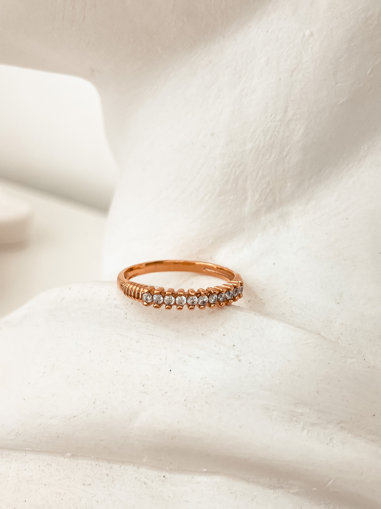 Anel aparador de aliança delicado e versátil, cravejado com zircônias que confere um brilho intenso e exclusivo à peça. Por ser bem fininho fica discreto e perfeito para usar junto com sua aliança. Pode ser usado sozinho ou com anéis solitários, assim ficará uma graça também! Você pode complementar com um colar fininho com um pingente de ponto de luz formando uma composição perfeita. Seja criativa e arrase!