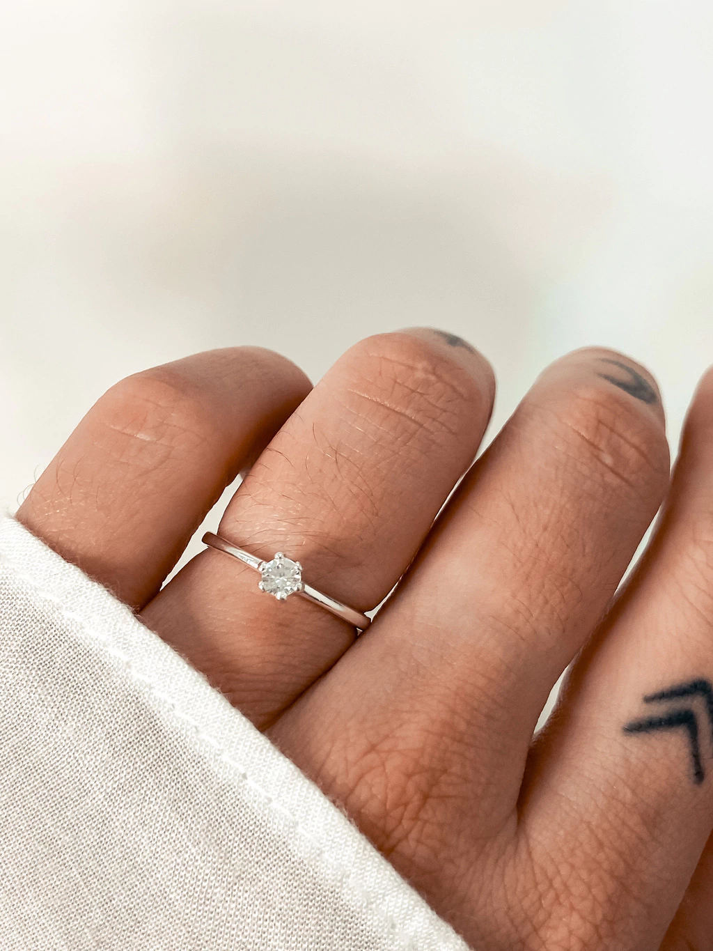 Anel solitário, super clássico, para as mulheres que gostam de acessórios minimalistas e joviais! Perfeitamente delicado, uma ótima opção para se usar junto com uma aliança. Peça curinga que combina com tudo!