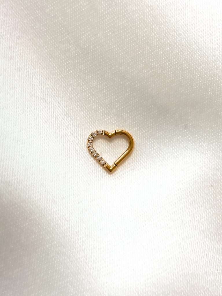 Onde utilizar: o formato de coração permite que ela seja utilizada no daith, onde se encaixa na anatomia, destacando a beleza e delicadeza da joia. Um dos modelos mais queridinhos por aqui.
