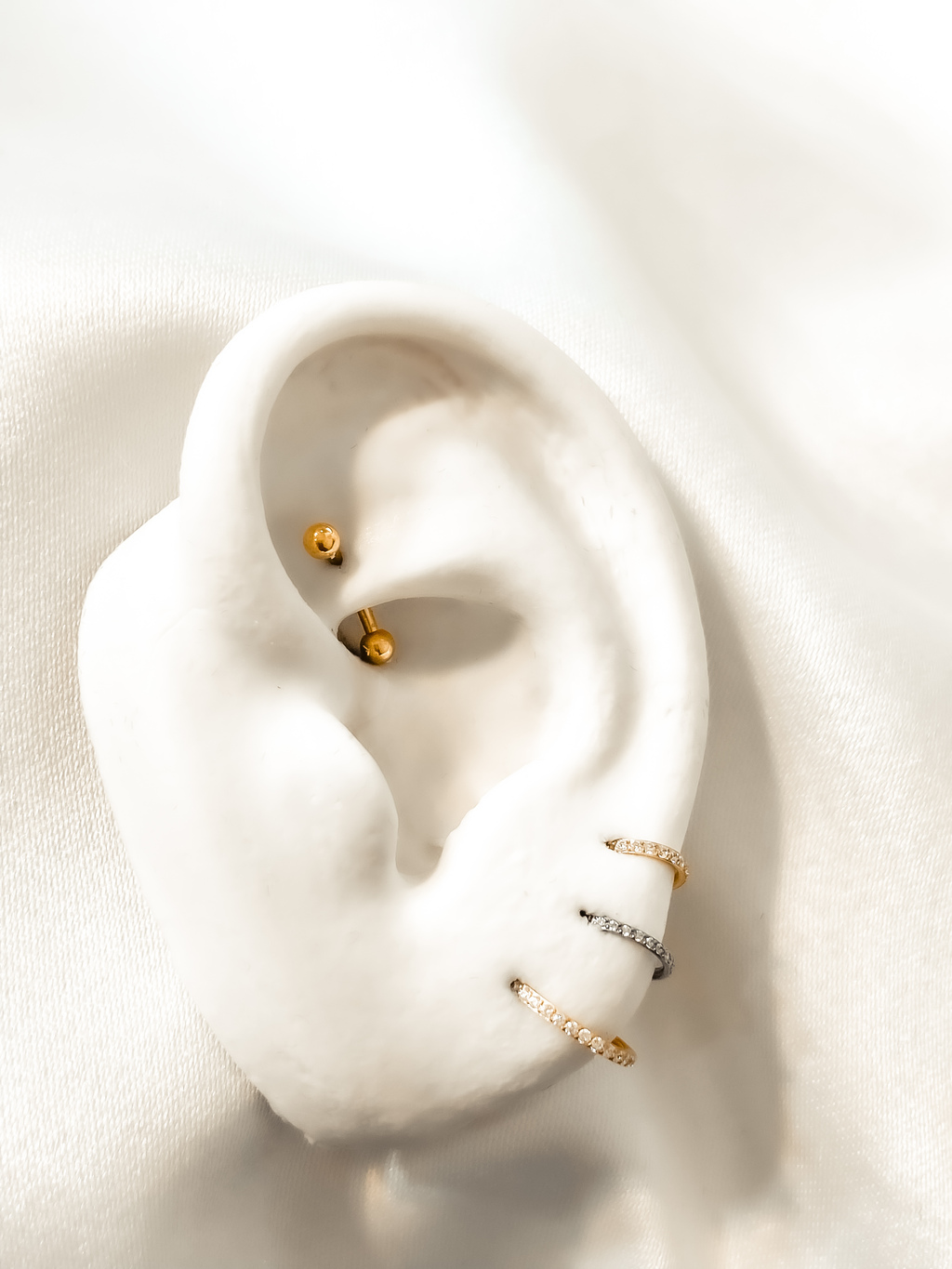Onde utilizar: uma joia básica & estilosa, pode ser utilizada no rook ou anti tragus, mas também no vertical labret que é região bucal e sobrancelha.